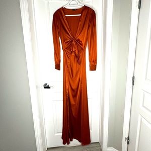 Burnt Orange Fashion Nova Floor Length Maxi Gown Women's Small
