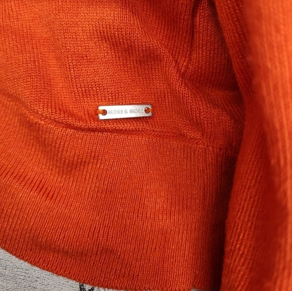 Burnt orange knit open front cropped bolero cardigan sweater shrug with 3/4 sleeves, by MORE+MORE.