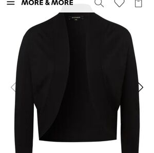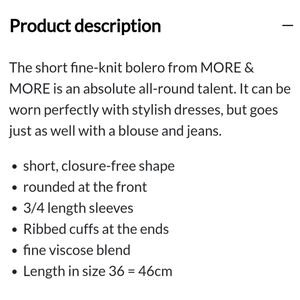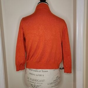 Burnt orange knit open front cropped bolero cardigan sweater shrug with 3/4 sleeves, by MORE+MORE.