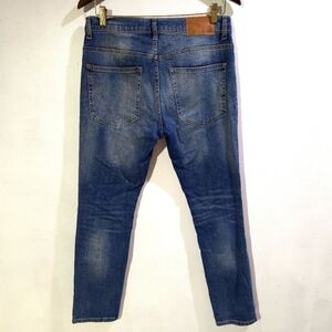 Experience a blend of style and comfort with Burton's blue skinny jeans, featuring a vintage-inspired distressed look. The medium-wash denim showcases natural fading and intentional distressing, particularly around the knees, for a casual, lived-in appearance. Perfect for adding a touch of rugged charm to your everyday wardrobe.