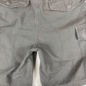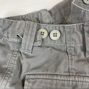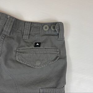Burton Gray Cargo Shorts, Hiking Outdoor Men's Size 28. Front zipper. Two front slash pockets, two cargo pockets with double snaps, two back pockets with flaps and snaps. Adjustable waistband. 100% Cotton. Very good used condition. Please see photos for approximate measurements.