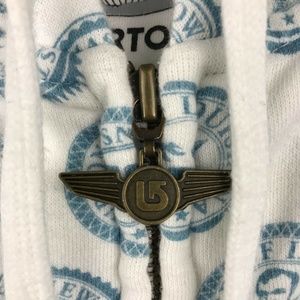 Burton Hoodie Snowboard Ski Zip Front US States Graphic White Blue Size S