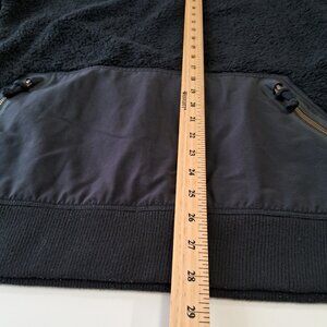 Burton sherpa and nylon sweater. One large nylon front pocket with zippered pockets. Two large nylon patches on the sleeves and shoulders.