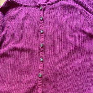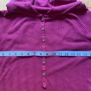 Burton Waffle Knit Hoodie Tunic Top – XS, Fuchsia Pink, Button Front