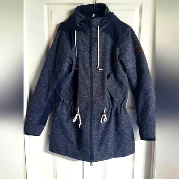 This Burton jacket is just 😍 79% Acrylic 15% wool 6% Cotton -Lightweight hood that can be button up into the collar -Drawstring waist -Inside pocket - 2 outer pockets -subtle speckles of colour on the outer part of the jacket -meant to form fit - PTP 22" -shoulder to bottom of the jacket 31" No rips is in like new condition apart from the discolouration on the Burton tag. Size S