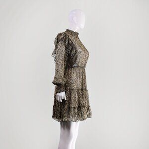 Dive into the nostalgia of the charming leopard print vintage mini dress. A statement piece in itself, it features delicate puff sleeves, ruffled accents, and a tiered skirt that dances with each step. The cinched elastic waist creates a silhouette that flatters every body type. Adorned with a chic mock neck, this dress marries casual comfort with understated elegance. Ideal for young women who love to express their style with a nod to the past. As a bonus, you’ll receive a complimentary jewelry gift with your dress.