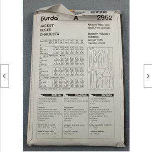 Burda 2952 Jacket Blazer UNCUT Sewing Pattern in 3 languages: English French Spanish