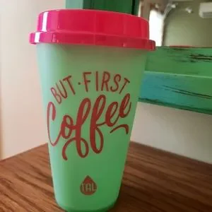 Teal and pink Reusable Coffee Mugg