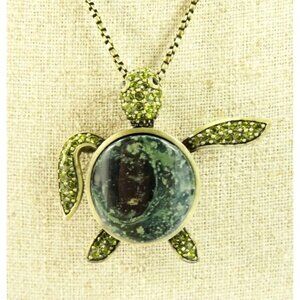Butler Designer Necklace Turtle Pendant Brooch Combo Green Rhinestones Bling