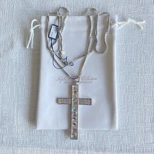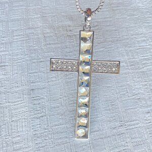 NWT Butler FAC Unisex 32" Passion Praise Swarovski Crystal Rhodium Plated Silver Tone Large Cross Pendant Necklace. Square cut & pave round inset genuine Swarovski crystals. Venetian style chain with lobster claw closure. Pendant length: 3 1/4" x 2" wide. Hypoallergenic, free from lead, nickel & cadmium.