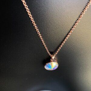 New with tag, in giftable pouch, 18" Butler Fifth Avenue Collection Rose Gold round prism faceted Auroa Borealis Crystal Necklace. Rhodium plated, nickel, lead, cadmium free. hypoallergenic.
