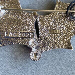 Butler FAC Silver Tone & Black Crystal Holly Brooch NWT