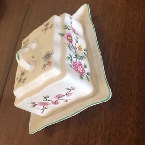 Vintage/Antique Chine Rose butter dish. Old Foley. Made in England. It is quite old however in excellent condition with no chips or cracks. There is some discolouring and mild crazing.