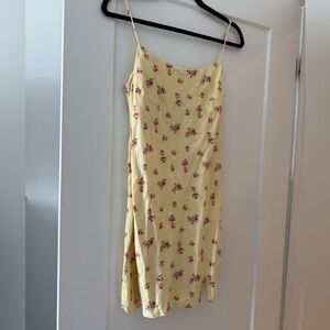 Butter yellow floral linen mini dress - size 4 (Small)