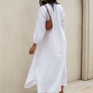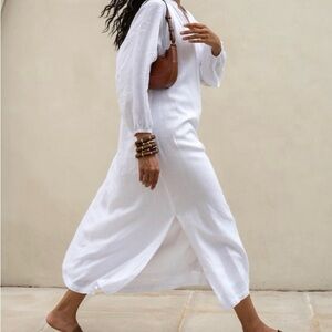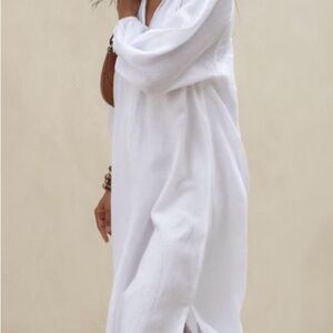 The softest buttercup yellow Doen vibe linen flowy maxi dress with balloon sleeves and pockets. Fully lined. Custom made.