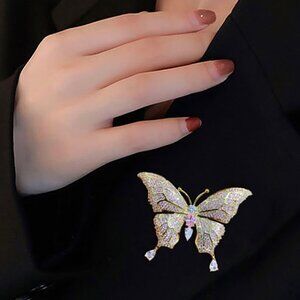 Butterfly Brooch Zircon Butterfly Brooch 18K Gold Plated