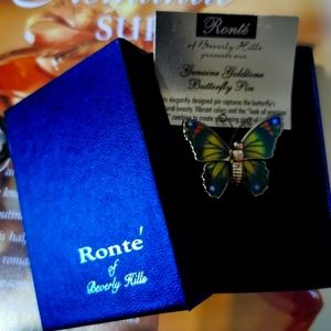 Genuine Goldtone 🦋 Butterfly Pin from RONTE' of Beverly Hills. This elegant Pin captures the butterfly's natural beauty. Vibrant colours and the look of precious gold combine to create a stunning piece of jewellery.