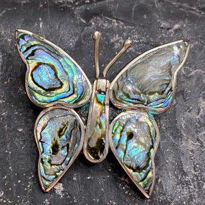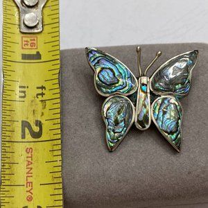 Butterfly Pin Brooch Abalone Shell Wings Made in Mexico,Vintage Alpaca Silver