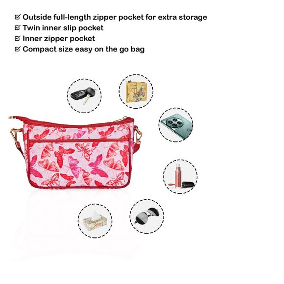 Butterfly Print Fabric East/West Hobo Crossbody Bag Over the Shoulder Purse