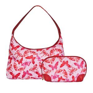 Butterfly Print Sling Hobo & Cosmetic Bag Combo for Women – Fabric Shoulder Bag
