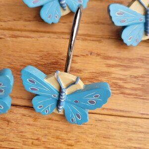 Butterfly Shower Curtain Rings Hooks Qty 12 Butterflies Blue & Yellow