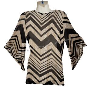 Butterfly Sleeve Top in Black & Beige Geometric Print - Size S, XL