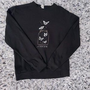This is a beautiful butterfly sweatshirt! I love it and would keep it if it still fit. Comfy light feels with a relaxed fit. RARE style has been discontinued from wholesome culture’s website. Overall in good condition. Slight imperfections the in the phrase “Let nature be free” see pictures for more details. Made from eco-friendly water-based ink and sustainable materials.