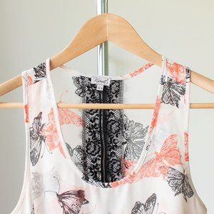 Light flowy sleeveless camisole top with a strip of black lace on the back that makes this special to wear.