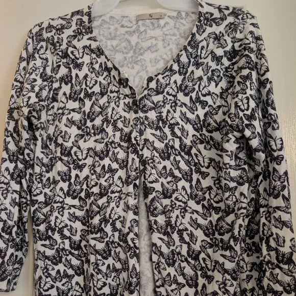 Soft knit black and white button up butterfly sweater UK size 14 (US 10) flattering and cozy