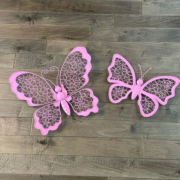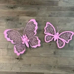 Adorable pink with a brown undertone butterfly metal wall decor. These hung in my daughters room and were so cheerful