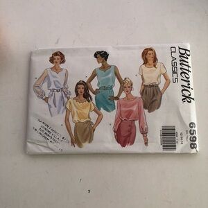 Butterick Classics 6598 sizes 12-14-16 Women's blouse pattern.