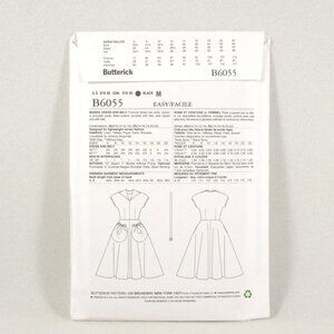 This is Butterick pattern B6055, a Retro '56 Fit and Flare Butterick sewing pattern, for a Women's fitted bodice dress with a side zipper, pockets and self belt. It is factory folded, complete with instructions. Please see the photos for envelope details.