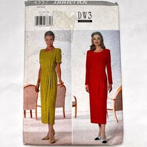 Butterick Pattern Dress Easy Midi 12 14 16 Semi Fitted Mock Wrap 4557 Vtg 90s