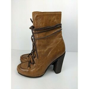 Buttero Tan Leather Lace Up Heeled Boots Size 36.