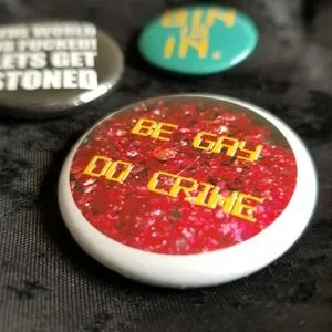 worn and loved, but they don't suit my new sober lifestyle. "gin is in" pin from the Park Distillery in Banff. pins measure 1 - 1.5 inches.