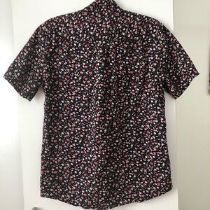 This casual button-down shirt features a striking black, red and pink color palette with a subtle floral print, perfect for a relaxed yet stylish look. Crafted from lightweight material, it offers comfort and breathability for everyday wear. Its classic design ensures versatility in any wardrobe.
