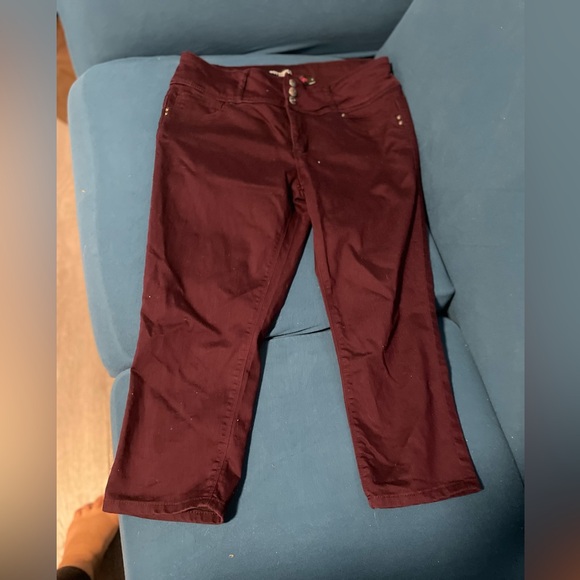 Bottoms up skinny capris. I’ve never been worn in the picture. The colour looks more Oborne or red, but they actually are purple.