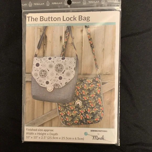 The Button Lock Bag sewing pattern by Mrs. H. Discover the very stylish Button Lock Bag in whatever fabric color and pattern you choose! Perfect for any occasion, this bag combines functionality with a chic design. New, pattern only.