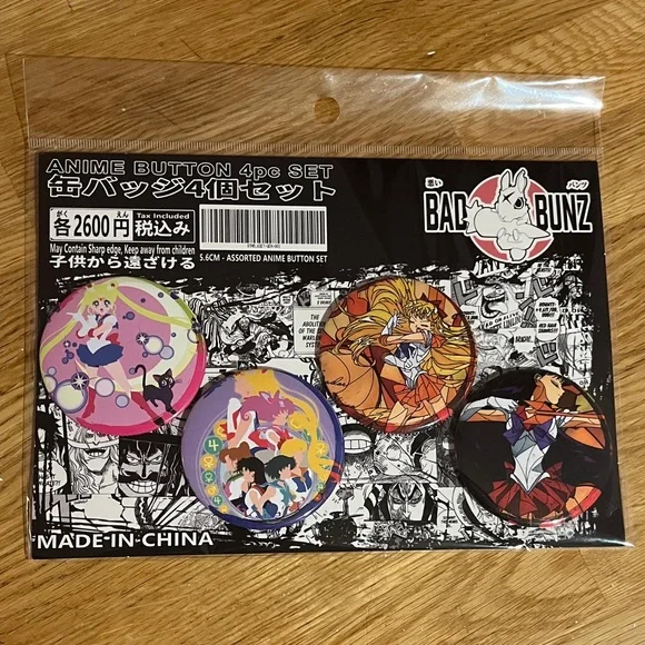 Add a playful touch to your outfit with this Sailor Moon Anime Button 4 piece Set. Featuring vibrant multicolor designs, these pins are perfect for anime enthusiasts. If you haven’t joined Poshmark use invite code SHOPPY_SPICE for $15 off your first purchase. Smoke-free home. New listings are added often. Follow and turn on the notification. Bundle your Likes for a special offer. Measurements are approximate. Questions? Leave a comment below!