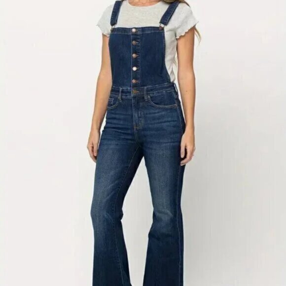 Button Up Adjustable Strap Overalls Deep Blue LAST CHANCE