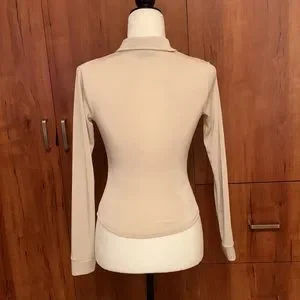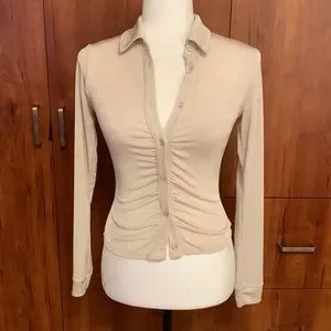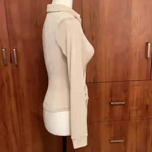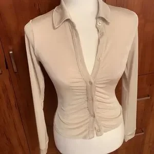 Stretchy, shimmering material Collar Long sleeve Button placket at the front Gathering at the front no size tag