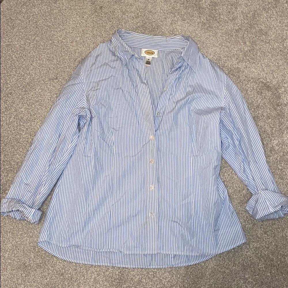 A pinstriped button up float collared long sleeve