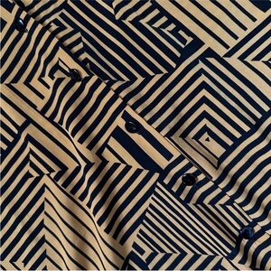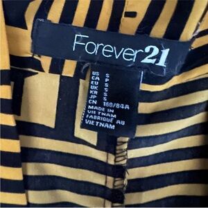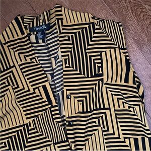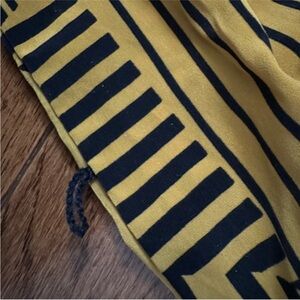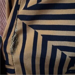 Y2K. Thin lightweight button down sleeveless dress. V neck. Mustard yellow and black striped geometric print. Loops on the sides to add a belt. Small rip on the bottom, not very noticible. Great condition. Pit to pit 17” Length 32”