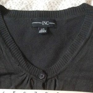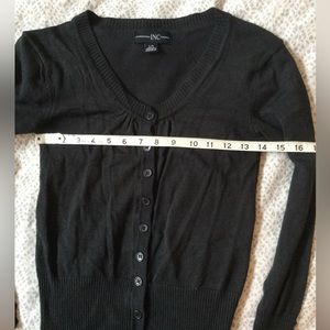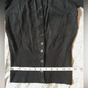 Fitted stretchy thin sweater, button cuffs accent, tag says large, see measurements- but it is quite strechy
