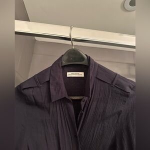 Midi length duster / button down shirt with split tail style in back and military detail shoulders. Like new. Fits small medium