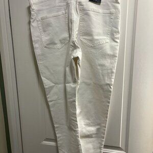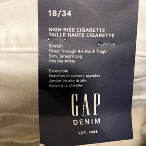 These button fly white GAP jeans are in a women's size 18. They are in a slim/straight high rise cigarette style, in an ankle length. A great addition to any wardrobe!