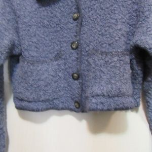 Button up 2 front pockets bumpy look beautiful blue sweater