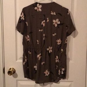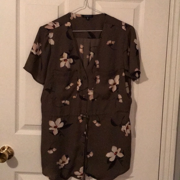 Dynamite green button up blouse with floral design. Has two pockets on each side and a drawstring waist.