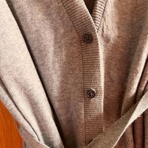 Good used condition Banana Republic XL button up grey cardigan sweater with belt ,cotton-tencel-wool-cashmere