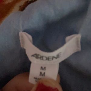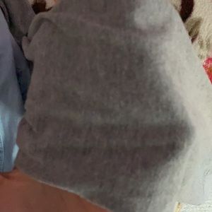 Cute denim button up top with grey sleeves and a grey hood! Perfect for one of those chilly days where you just want to throw something over your t shirt and make it cuter!